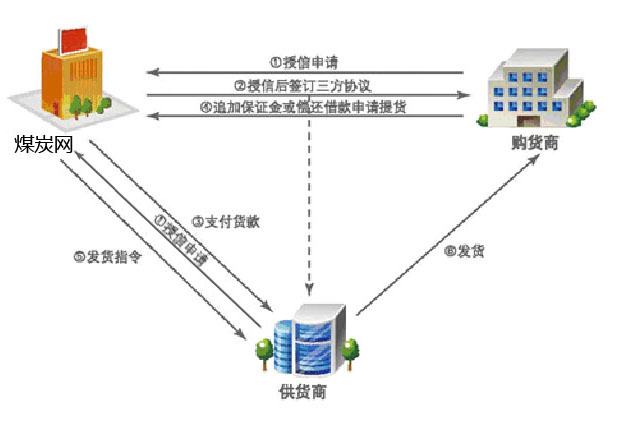預(yù)付款(未來(lái)貨權(quán))保理融資業(yè)務(wù)是煤炭網(wǎng)以控制購(gòu)貨商(借款人)向供貨商(收款人)購(gòu)買的煤炭的提貨權(quán)為手段,向購(gòu)貨商提供融資,用于支付供貨商貨款,由供貨商根據(jù)約定按煤炭網(wǎng)指令進(jìn)行發(fā)貨的業(yè)務(wù)。該業(yè)務(wù)需要煤炭網(wǎng)對(duì)供貨商授信評(píng)估,在評(píng)估合格的情況下,煤炭網(wǎng)可面向購(gòu)貨商在該供貨商取得煤炭網(wǎng)授信金額的范圍內(nèi)做預(yù)付款保理業(yè)務(wù)。